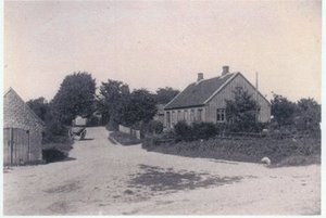 Sprøjtehuset til venstre på Bøgevej, hvor der nu er parkering. Nedrevet omkring 1950?
